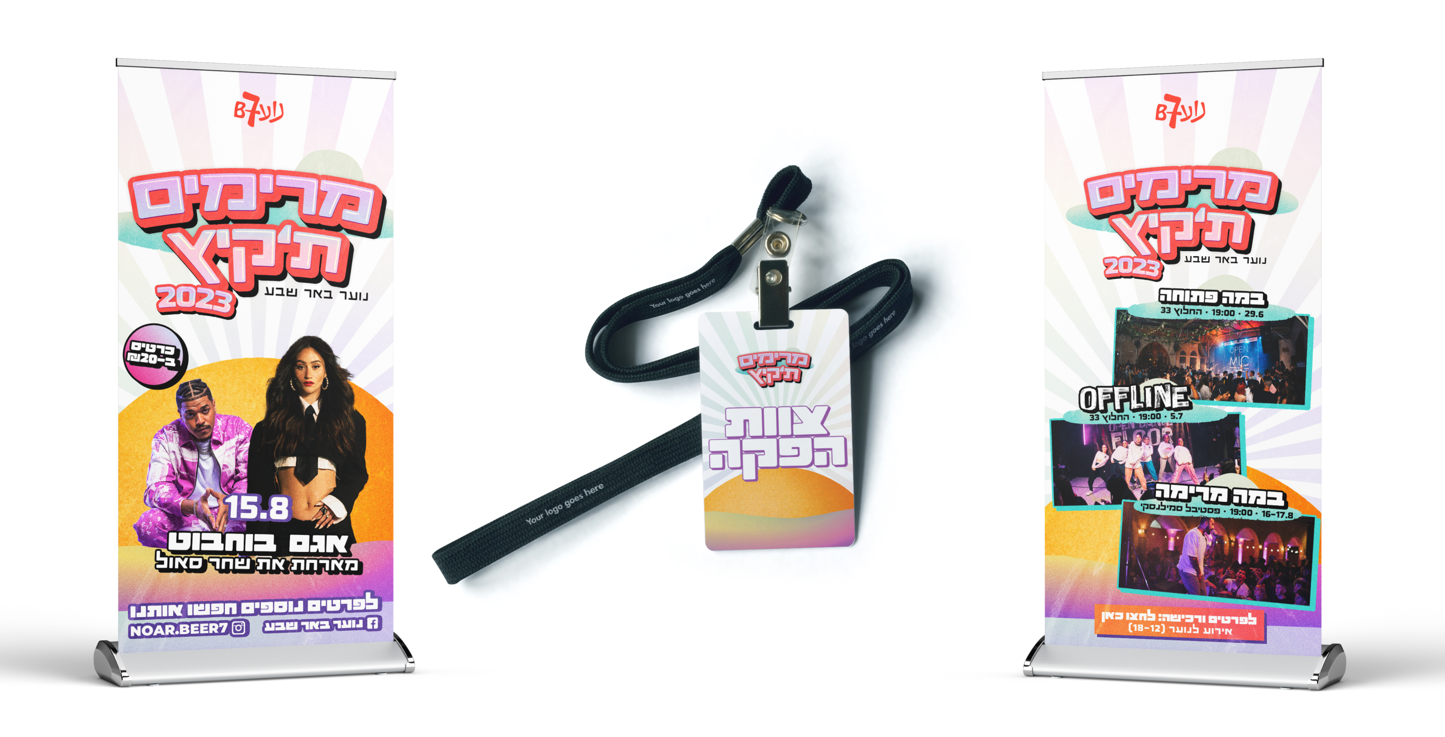 הלוגו לנוער7 ומשלב טיפוגרפיה צעירה ומראה ״רחוב״ אך עם צבעוניות חמה ומעגלית שמדגישה תנועה ואנרגיה. העיצוב משדר שילוב בין זהות מקומית לעדכניות, בגובה העיניים של בני הנוער.